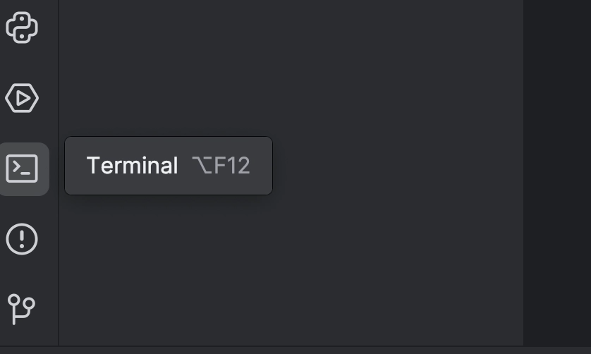 接下来,我们需要使用 torch 选项安装 Transformers。 您可以通过终端进行此操作 – 点击左侧的按钮打开终端,或者使用⌥ F12(macOS) 或Alt + F12(Windos) 热键。