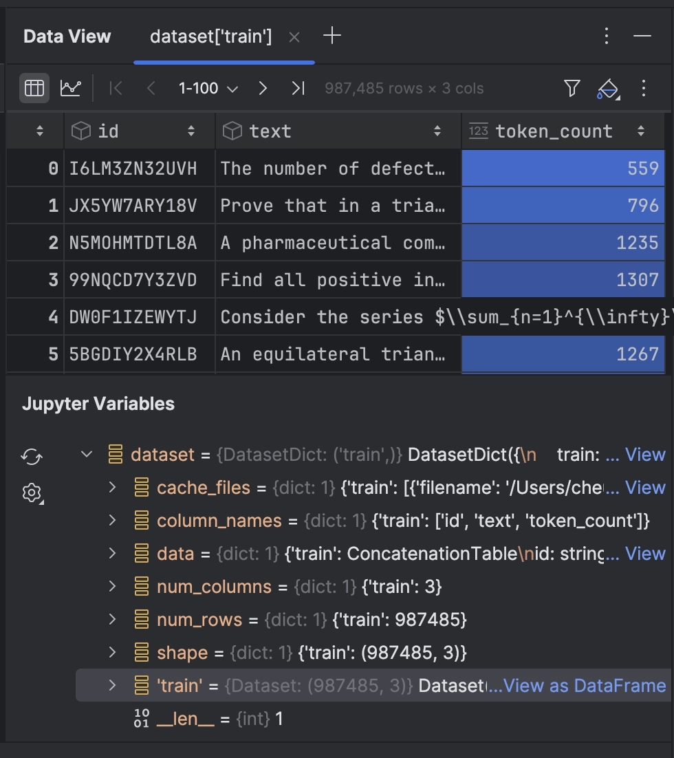 features: ['id', 'text', 'token_count'],