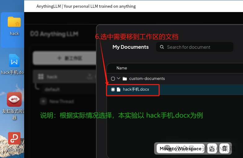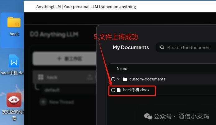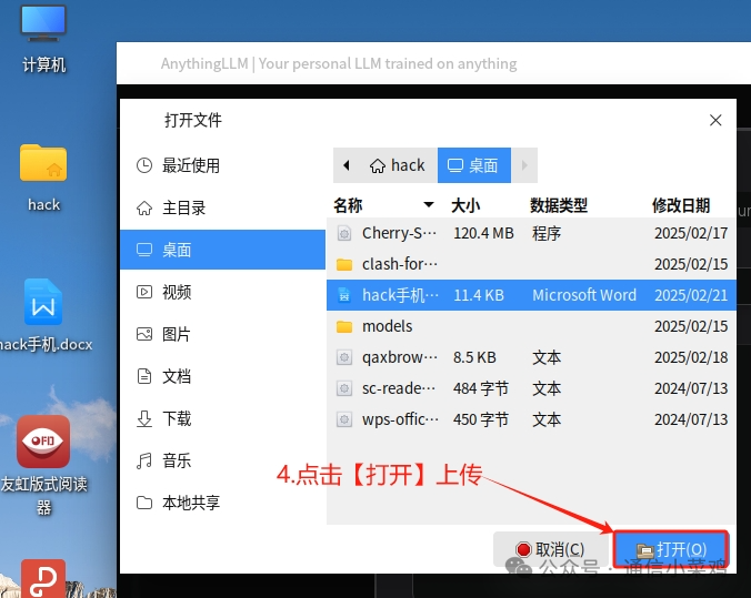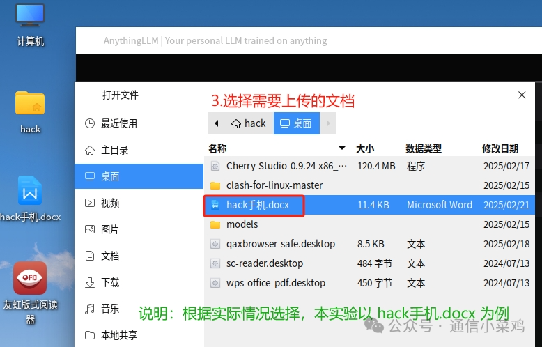 3.选择需要上传的文档(说明:根据实际情况选择,本实验以 hack手机.docx 为例)