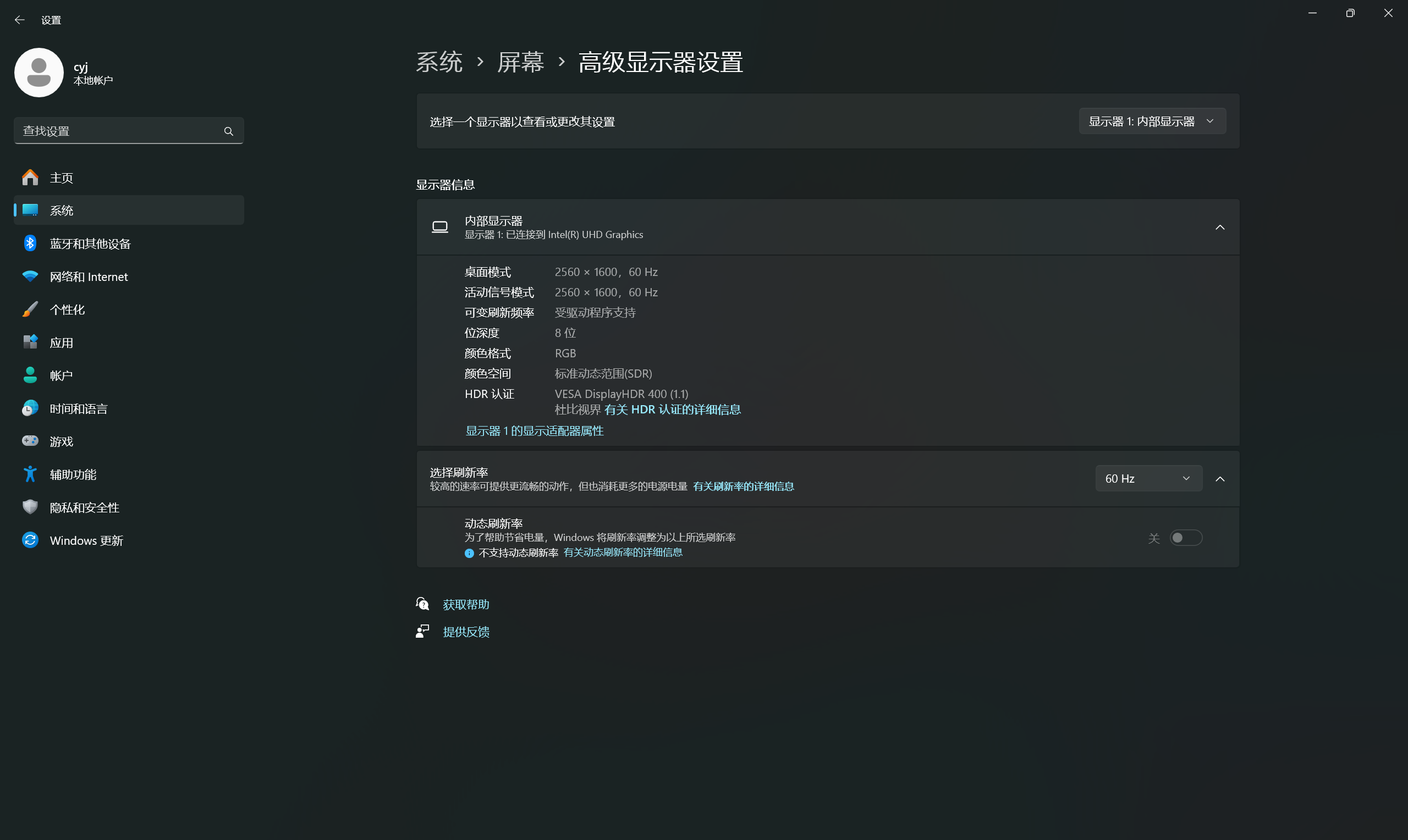 拯救者电脑因为是240Hz刷新率的屏幕,在平时不打游戏的时候没啥用,还挺费电。在系统>屏幕>高级显示器设置中,将刷新率设置为60Hz。