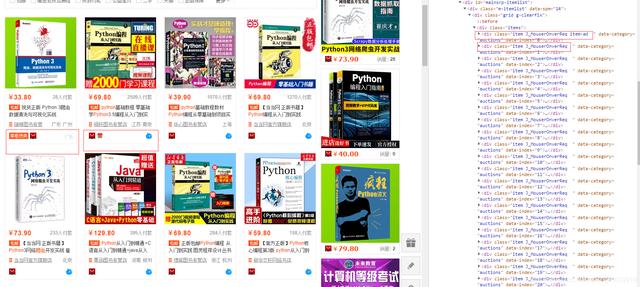 5.获取商品信息,在这里我发现前几个会有淘宝的掌柜热卖的广告,属性和其他的不一样,我就用item从上往下数的第几个的方法找到他们