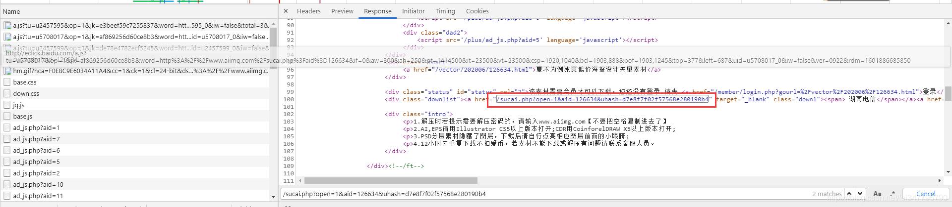 原本想着网页数据里面是否有接口数据可以直接找到这个参数,在开发者工具里面搜索并没有这个参数,看一下网页源代码里面是否有这个下载链接~