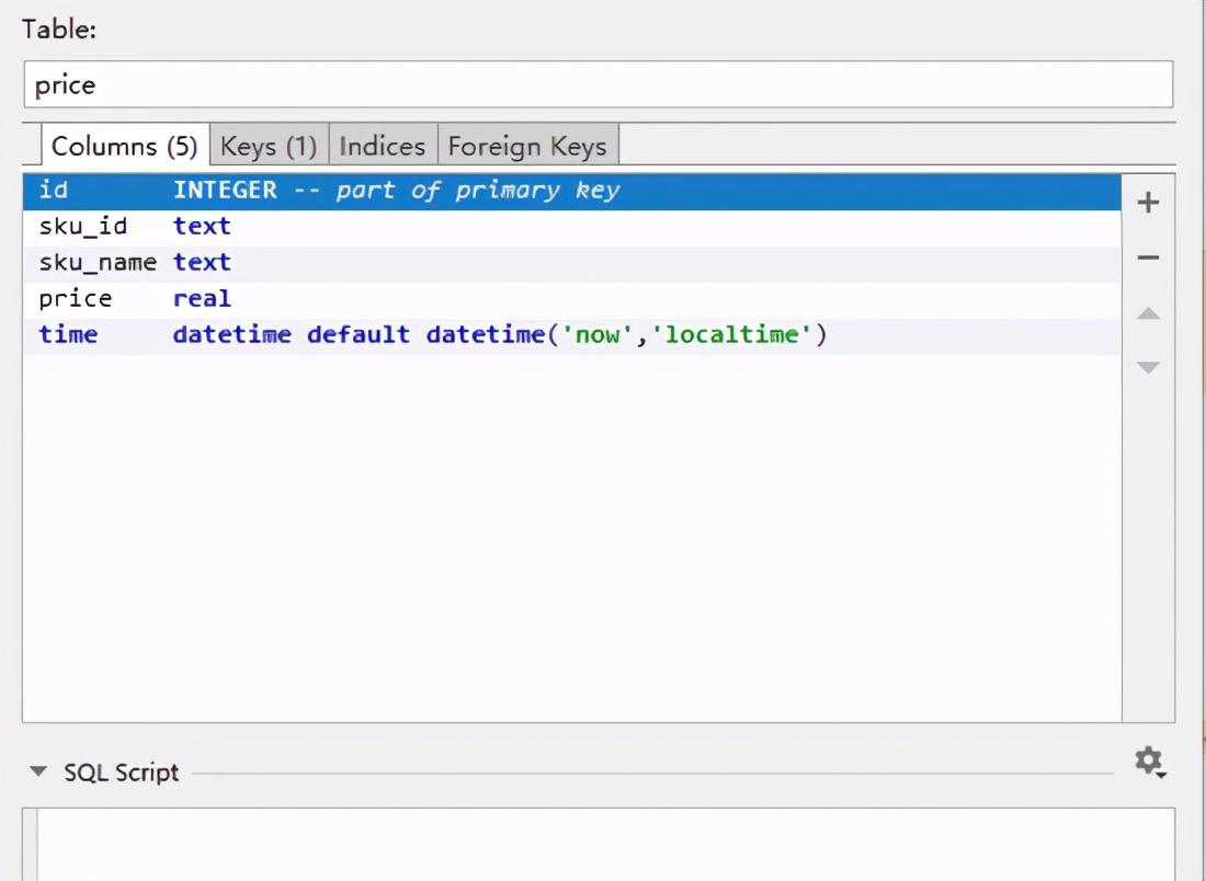 把抓取的价格存入 sqlite 数据库,使用 PyCharm 的 Database 功能创建一个 sqlite 数据库