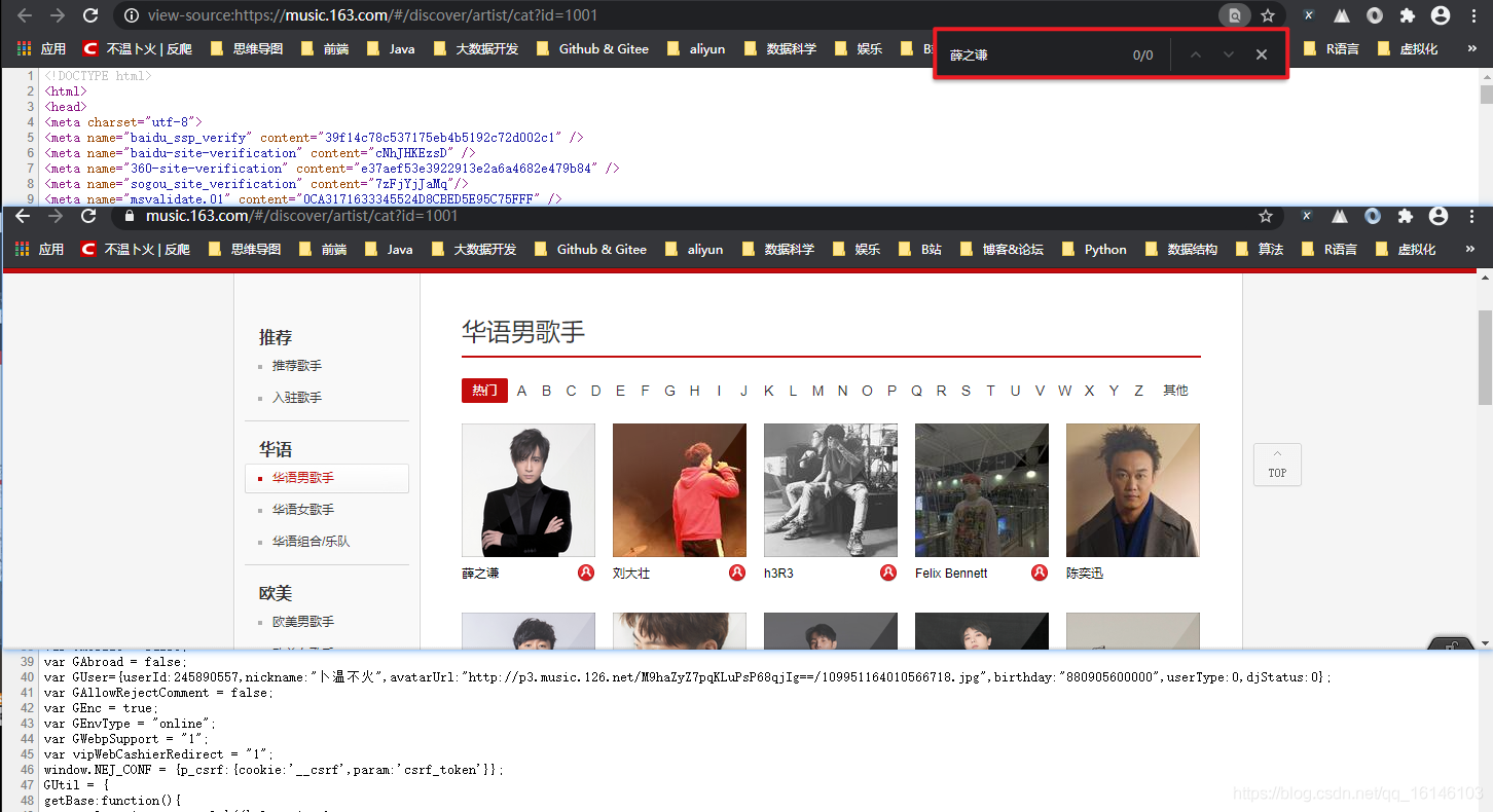 🆗,我们发现正是我们想要爬取内容的URL,至于前两个推荐歌手以及入住歌手为什么不爬取,是因为推荐的这些歌手都在我们要爬取的分类之中,如果全部爬取,会出现重复现象。
