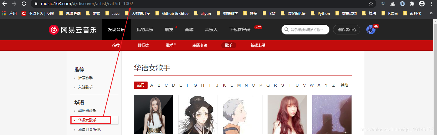 华语女歌手: https://music.163.com/discover/artist/cat?id=1002