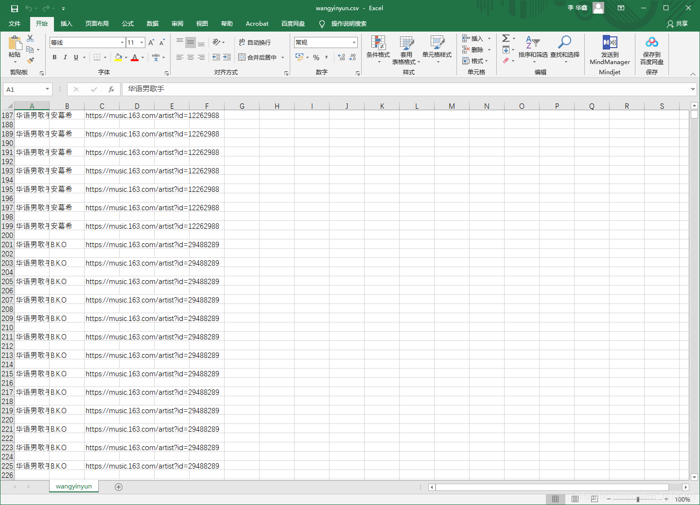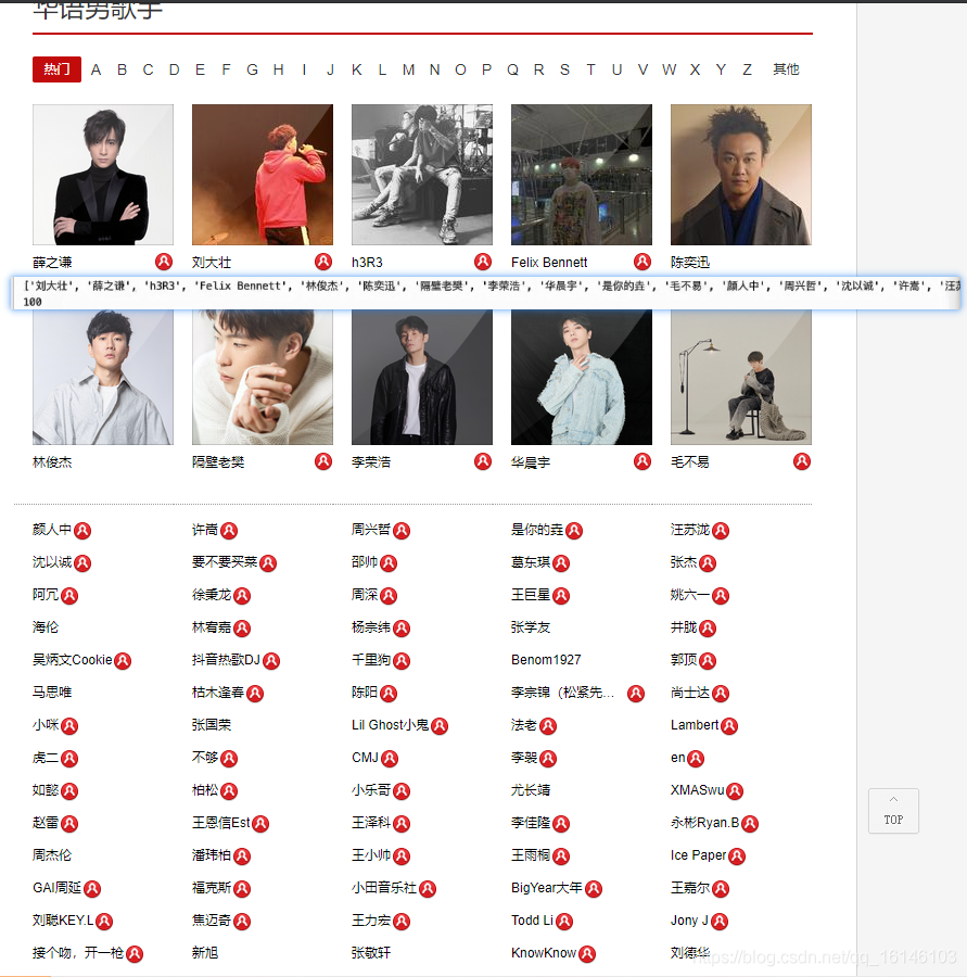 我们通过观察,发现歌手正好是100个,说明我们已经成功拿到数据了。