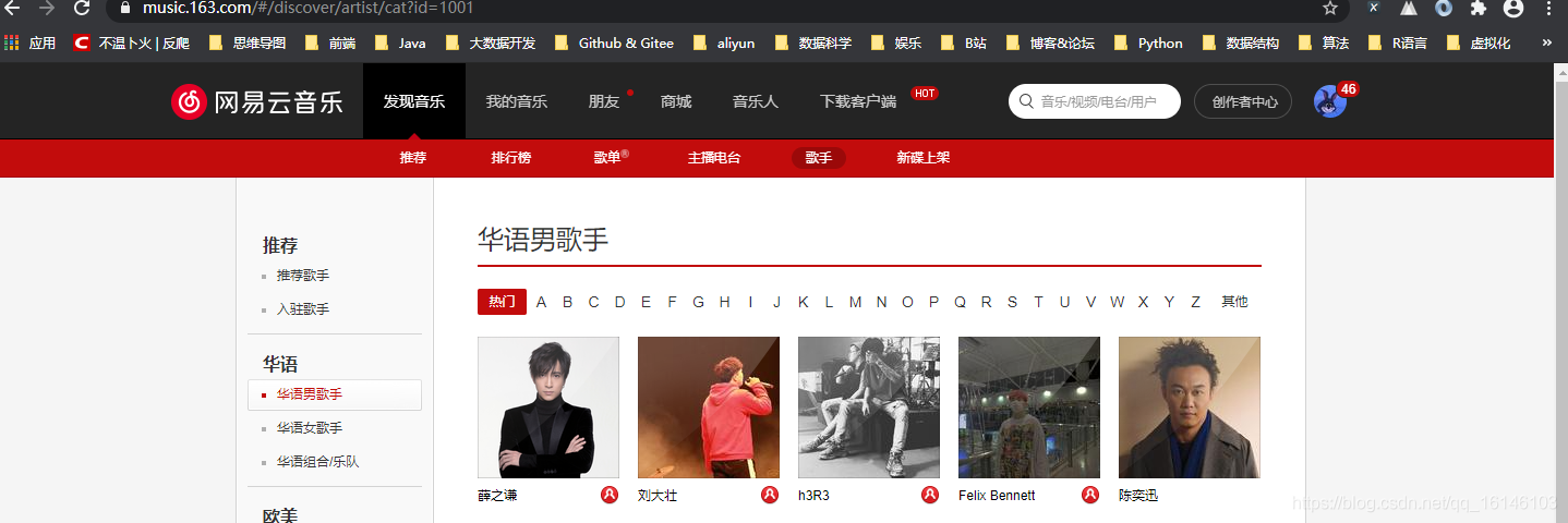 华语男歌手: https://music.163.com/discover/artist/cat?id=1001