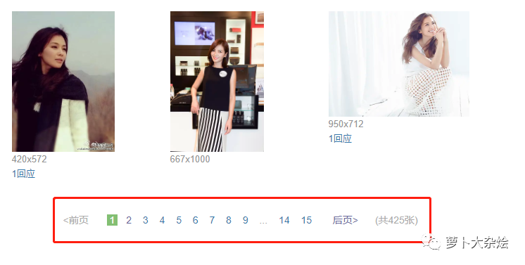 我们可以从豆瓣影人页,进入都影人对应的影人图片页面,比如以刘涛为例子,她的影人图片页面地址为