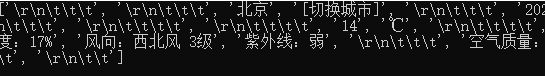 发现连网页中换行符啊什么的也都提取出来了,还有,别忘了,提取出来的是列表哦。我们还要做一下处理。