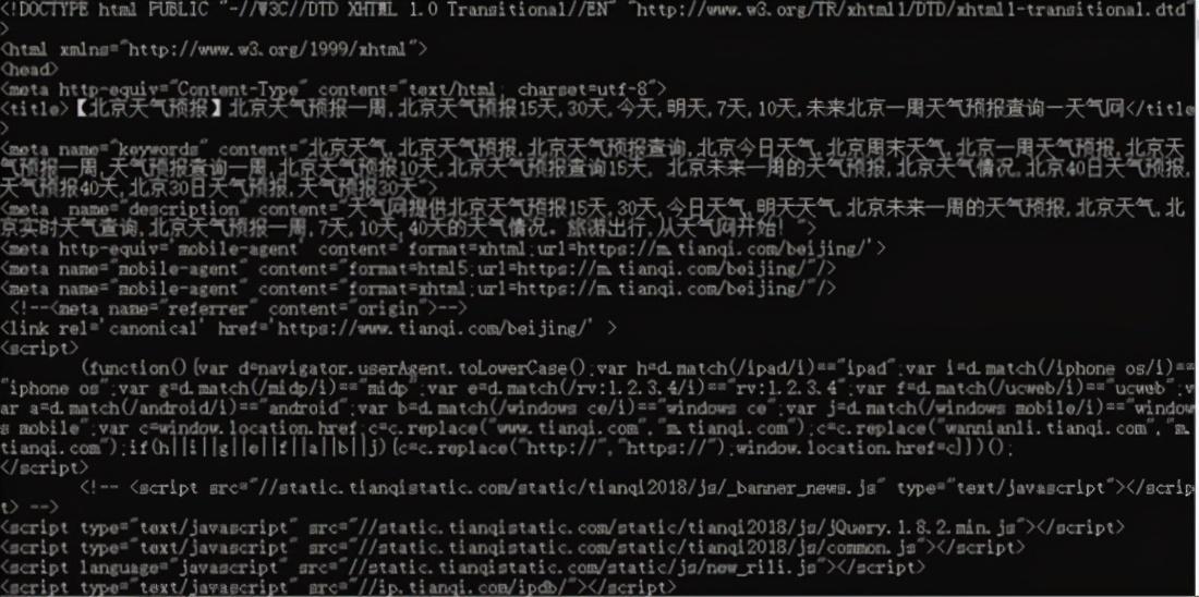 我们首先导入requests库,然后就用它来获取目标的网页,我们请求的是天气网站中的北京天气。
