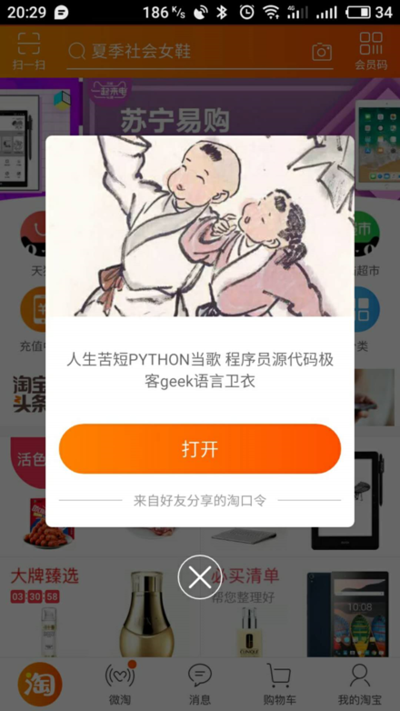 复制这个信息,然后打开淘宝,发现出现一个好友的淘口令分享: