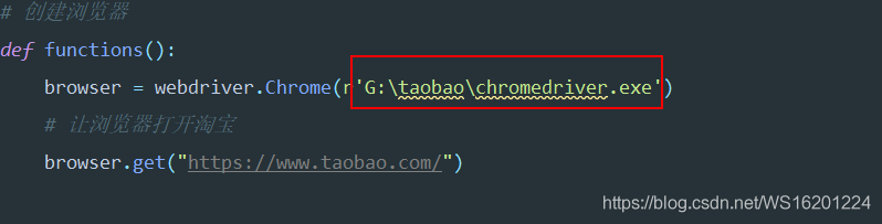 browser = webdriver.Chrome(r'G:\taobao\chromedriver.exe')