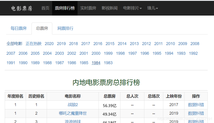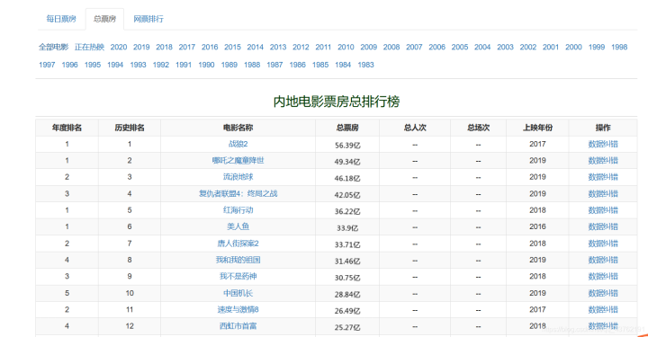第一次做也没什么经验,就瞄准了电影票房数据库。