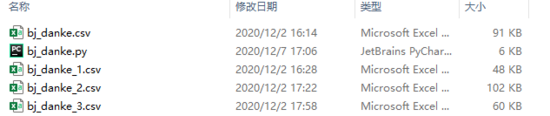 由于代码运行过程中中断了几次,最终将数据保存为以下几个csv文件中: