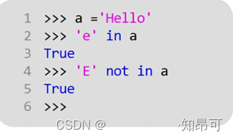 成员测试运算符有两个:in和not in,in用于测试是否包含某一个元 素,not in用于测试是否不包含某一个元素。
