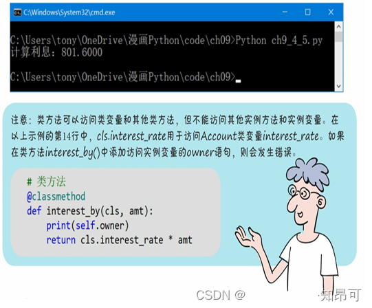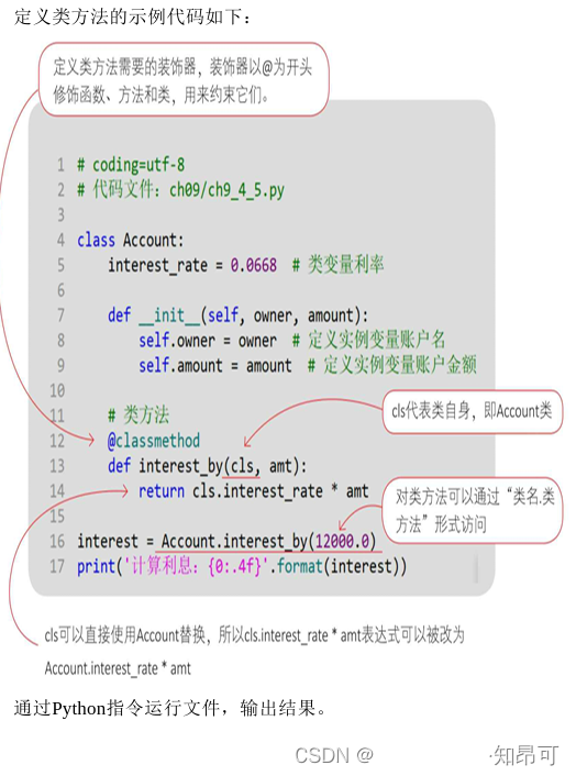 类方法与类变量类似,属于类,不属于个体实例。在定义类方法时 ,它的第1个参数不是self,而是类本身。