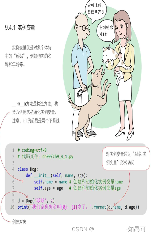 实例变量就是对象个体特有的“数据”,例如狗狗的名称和年龄等。