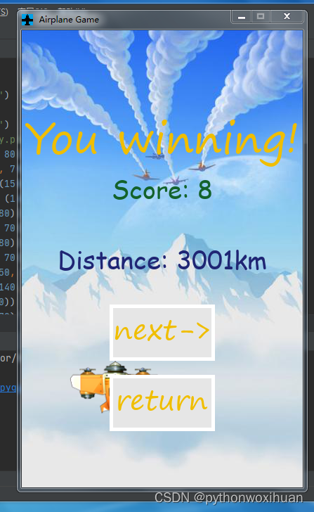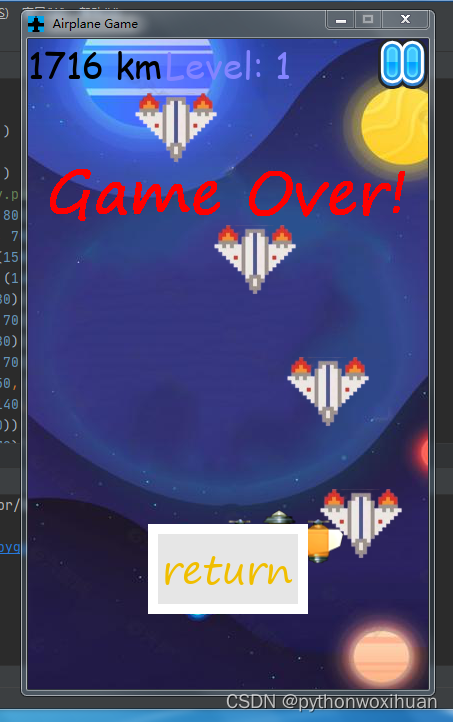 这是一篇关于Pygame开发飞机大战游戏的文章,详细介绍了AirplaneGame.py的实现过程,包括创建data目录和data.dat文件来存储游戏信息。文章提到了几个已知的Bug,如游戏失败后km不重置、返回界面的rect问题以及金币和关卡数据丢失等,但并未提供解决方案。