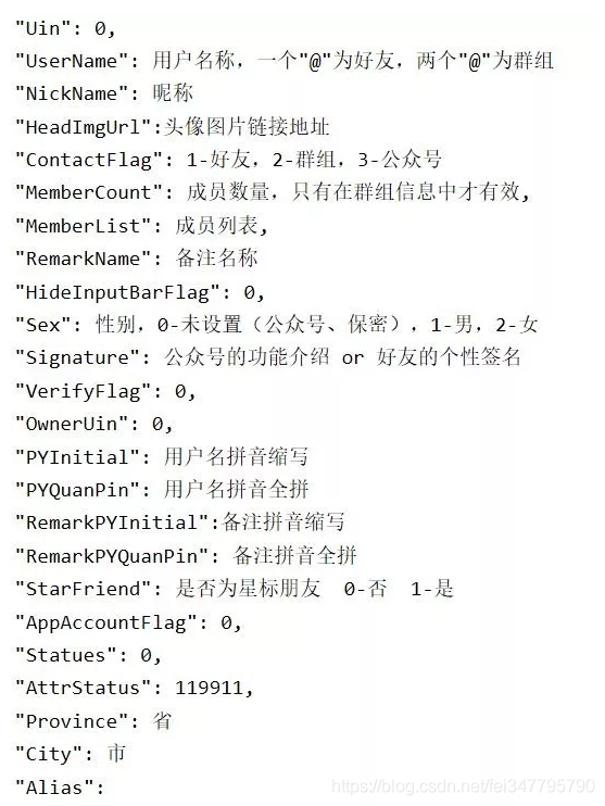 而这里的UserName,同一个你在不同的微信号中UserName并不相同。所以,在并没有一个可以特定区分好友的情况下,我们选择获取多组信