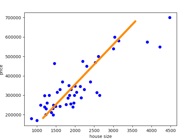 这是一个包含俄勒冈州波特兰市房价的简单数据集。该数据集中第一列是房屋面积(以平方英尺为单位),第二列是卧室的数量,第三列是房屋价格。该数据集中有多个特征(例如,house_size 和房间数),因此我们将研究多元线性回归,标签 (y) 是我们将要预测的房价。