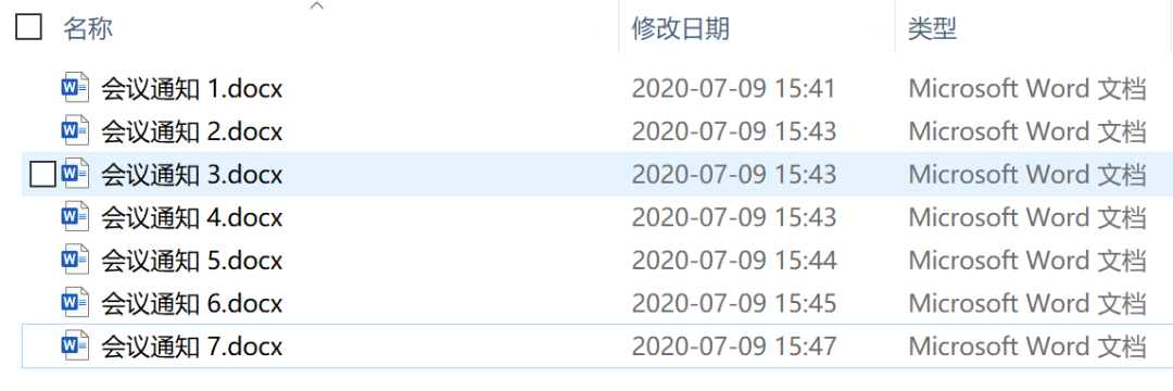 大概是这样,一个文件夹下有多份会议通知信息(本文以 7 份文件为例)