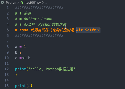 Yapf 是谷歌开源的一个用于格式化 Python 代码的工具,可以一键美化代码。支持两种规范:PEP8 和 Google Style 。