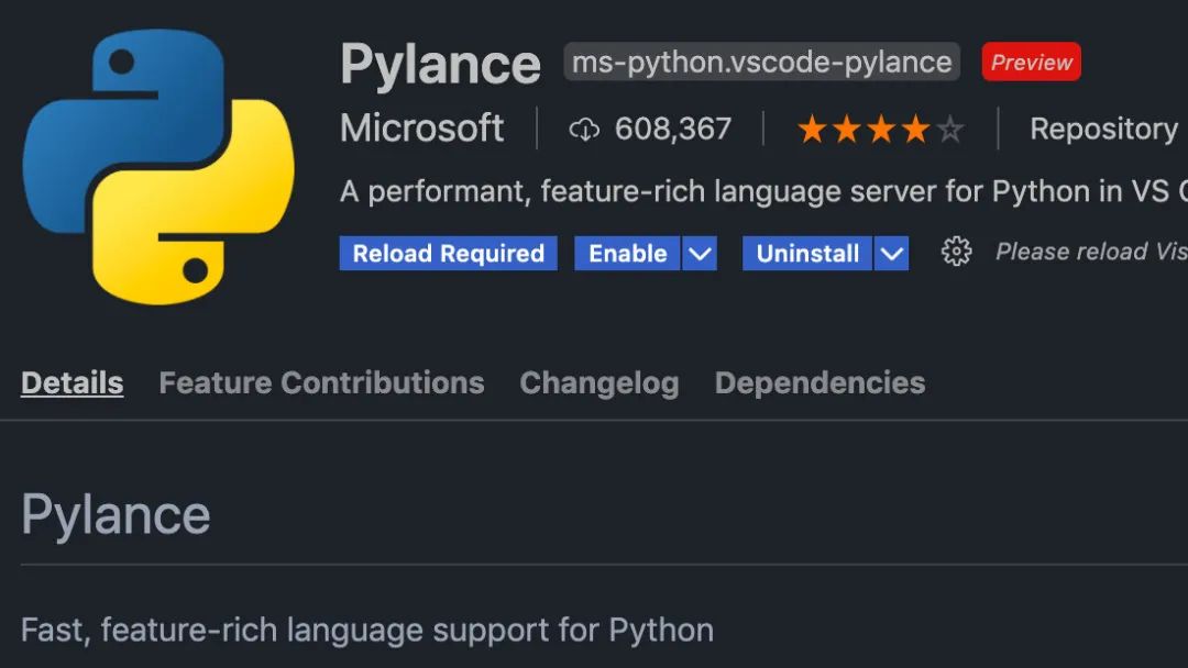 Pylance 是微软推出的一个快速而且功能丰富的Python语言扩展。Pylance 于 2020年7月发布,目前在 VS Code 市场中,安装量已有 60多万,足见其关注度。