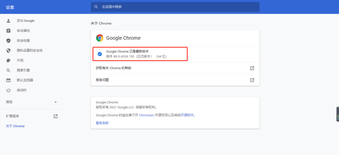 点击Chrome设置——>点击关于Chrome,即可查看Chrome的版本。如下图所示: