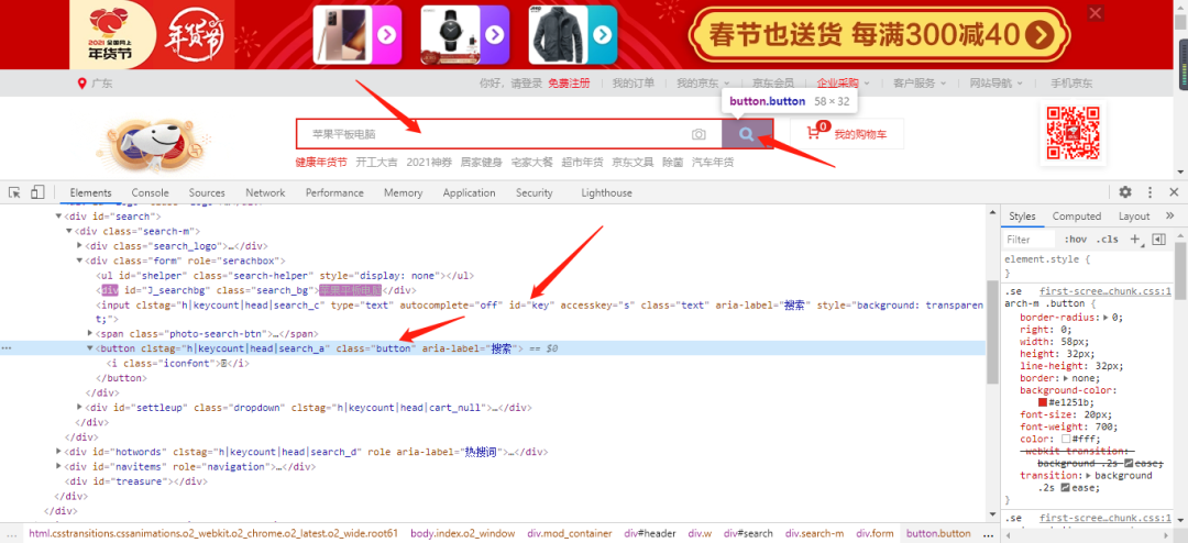 如上图,我们需要寻找id为key的节点和class为button的节点。具体代码如下所示: