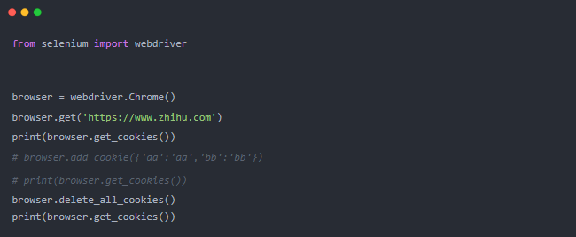 使用Selenium,还可以方便的对Cookies进行操作,例如获取、添加、删除Cookies等。具体代码如下所示: