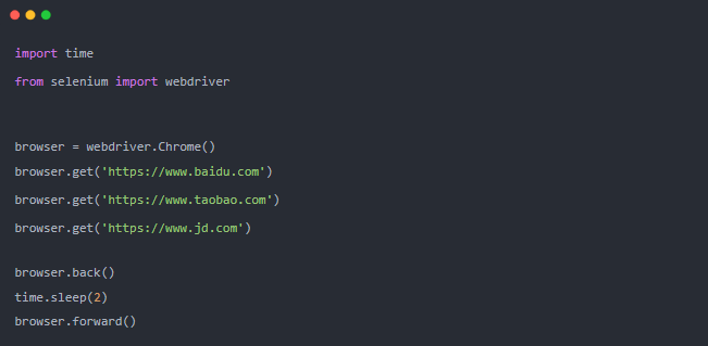 平常使用的浏览器都有前进和后退的功能,Selenium也可以完成这个操作,它使用back()方法后退,使用forward()方法前进,具体代码如下所示: