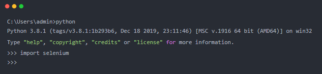 进入Python命令交互模式,导入selenium包,如果没有报错,那么就说明安装成功。