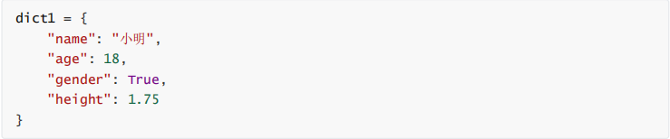 字典使用 键值对 存储数据,键值对之间使用 , 分隔
