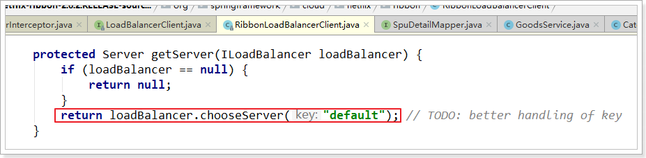 在刚才的代码中,可以看到获取服务使通过一个getServer方法来做负载均衡: