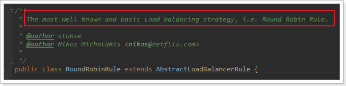 这里的rule默认值是一个RoundRobinRule,看类的介绍: