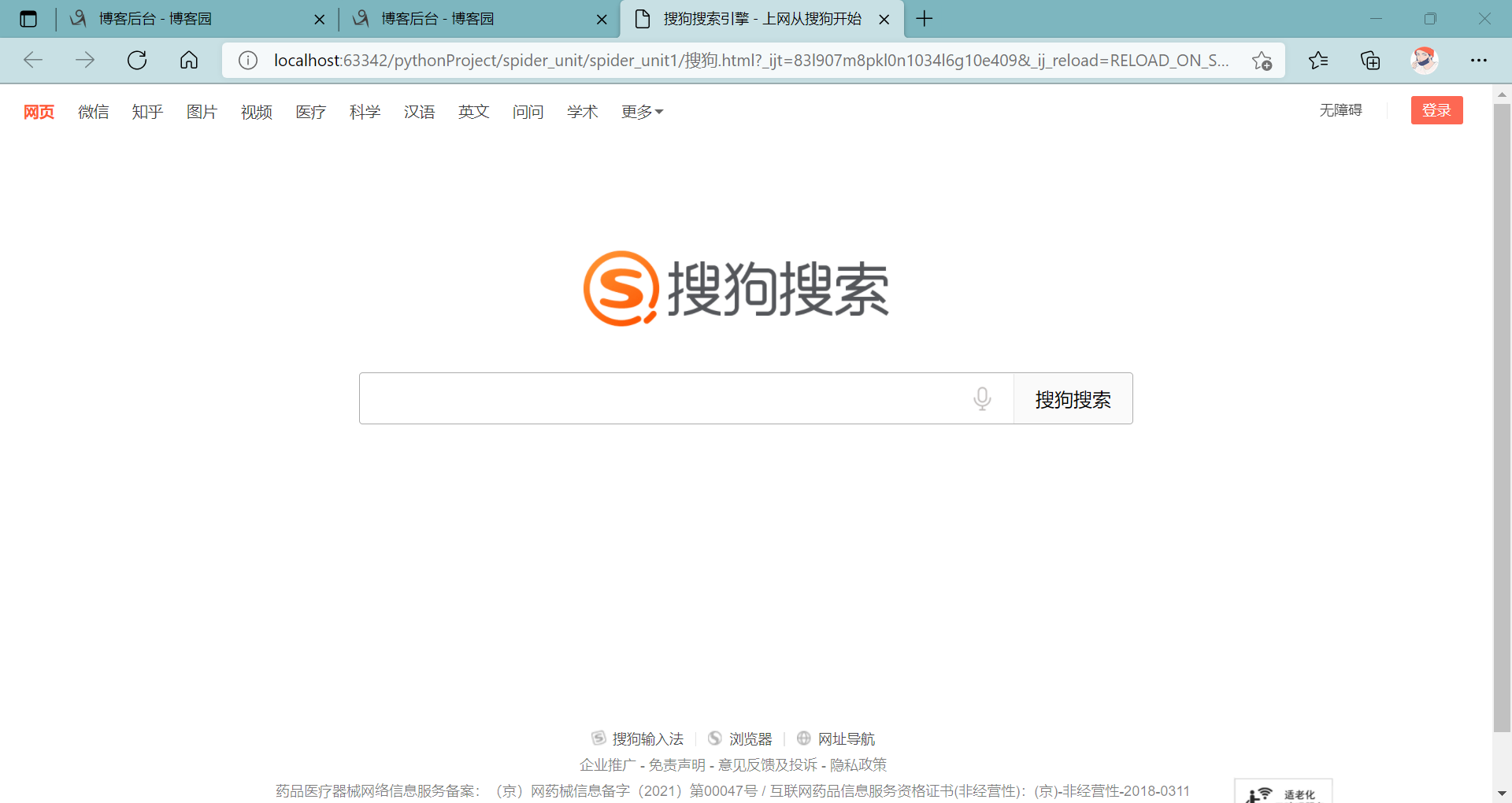 在这里这一句,就可以充分表明,是你自己本地的网页,而不是自己又打开了搜狗搜索的网页。