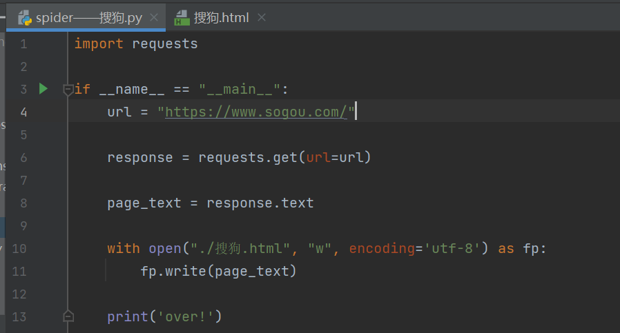 实战1:爬取搜狗搜索的网页代码。