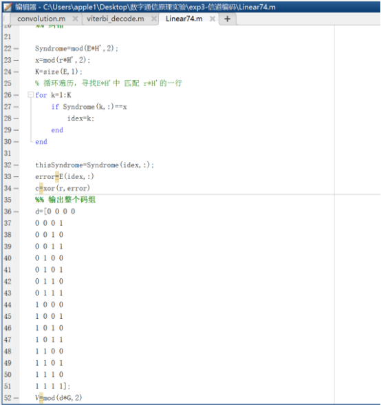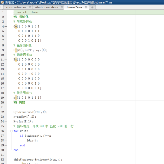 MATLAB实现(7,4)线性分组码与卷积码的编码译码