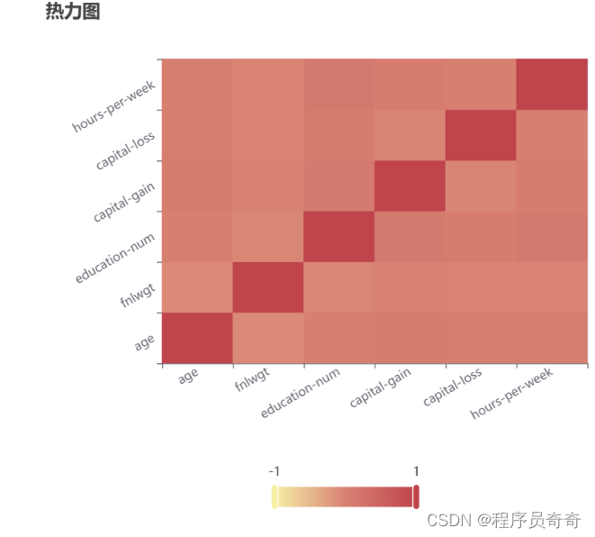 可以看出年龄age、序号fnlwgt、受教育时长education-num、资本收益capital-gain、资本损失capital-loss、每周工作小时数hours-per-week为数值型变量,其余均为分类变量。数值型变量中序号fnlwgt、资本收益capital-gain和资本损失capital-loss,数据分布都较为分散,最大值都是均值的数十倍。
