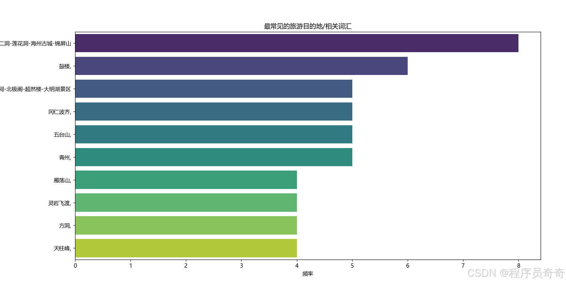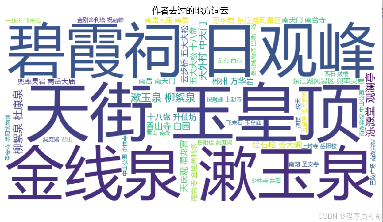 # 1. 对'作者去了这些地方'列的数据进行词频统计
