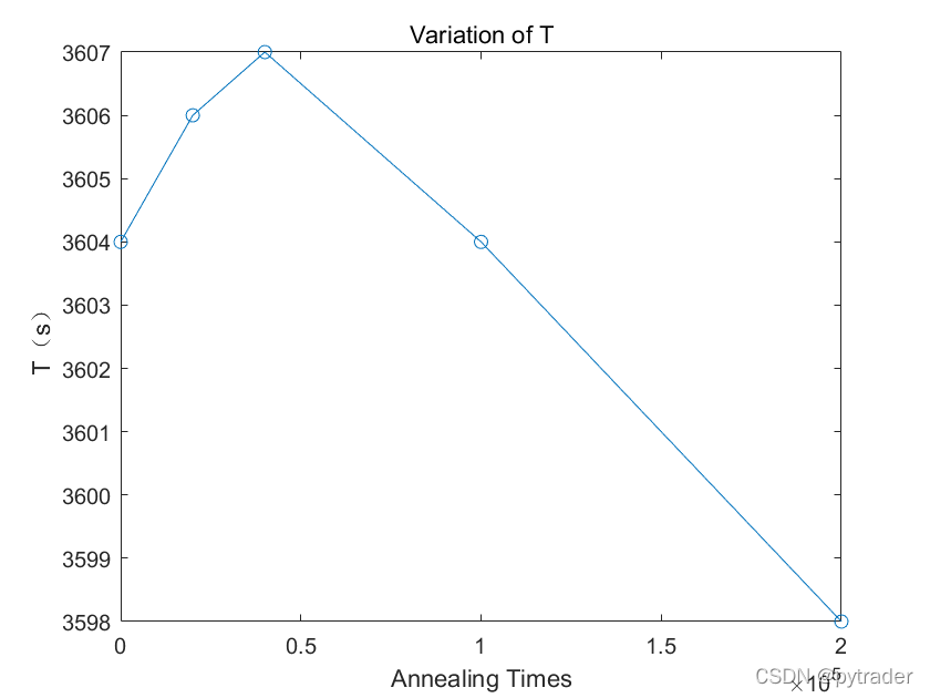 虽然节省的时间不多,但是完赛时间呈现明显的下降趋势,随着进一步退火还可以更优化,但当时出于时间紧迫就没有跑更多点(200000次退火需要Matlab运行约3小时)。