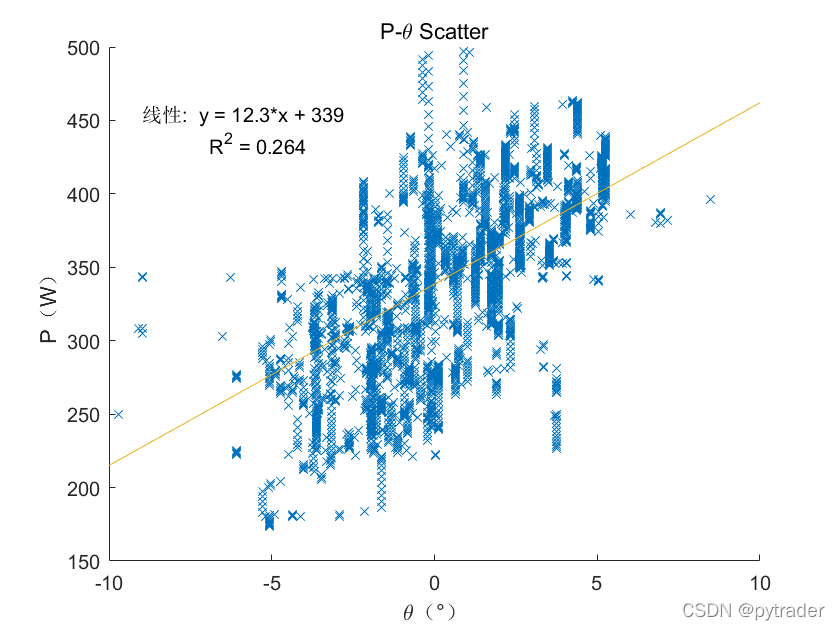可以看出功率策略在地面坡度空间有明显的趋势,我们做一个线性回归: