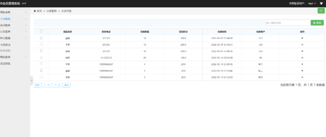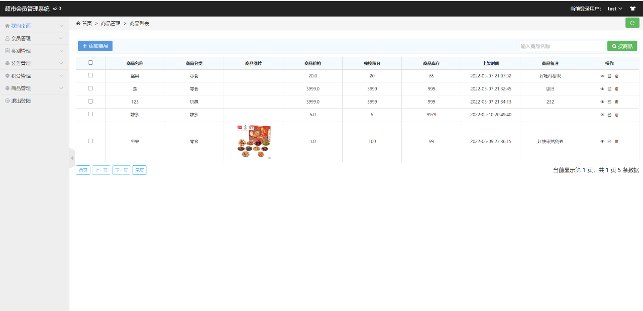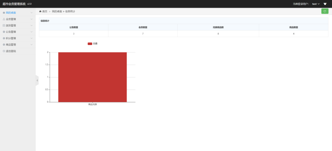 主要功能:会员端有注册、登录、查看商品、查看公告、兑换商品、修改个人信息。