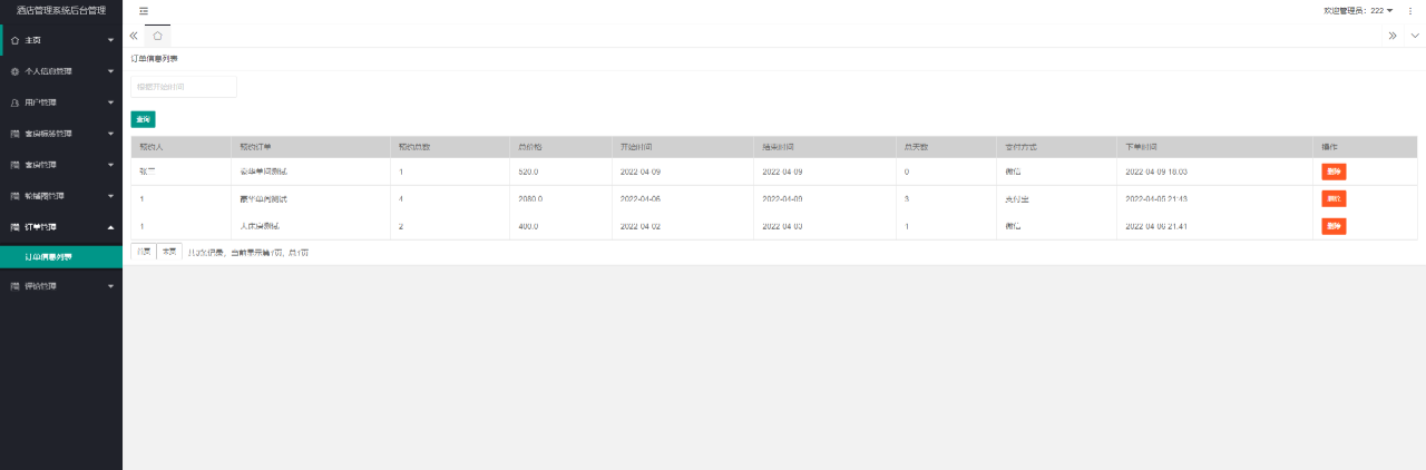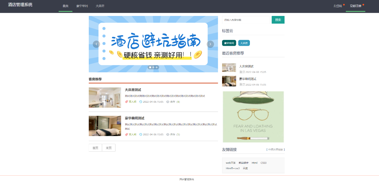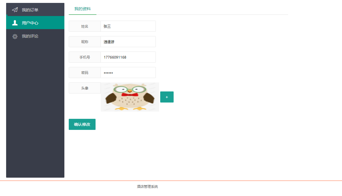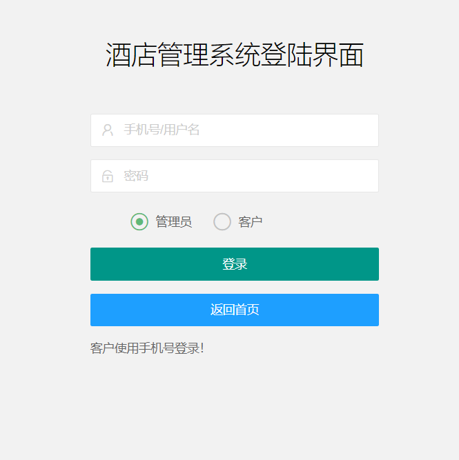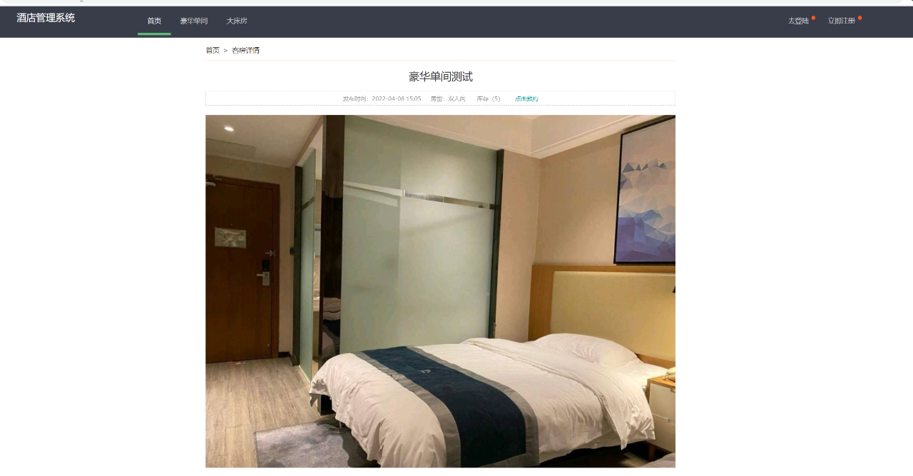 管理员端主要有登录、个人信息管理、用户管理、客房管理、客房标签管理、轮播图管理、评论管理、订单管理。