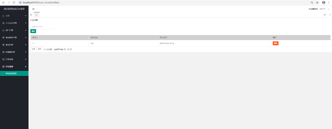 项目简介:基于SSM的酒店管理系统,客户可以下单预定客房、并对订单进行评价等,管理员管理酒店的客房、客房标签、订单、评价、用户信息等。