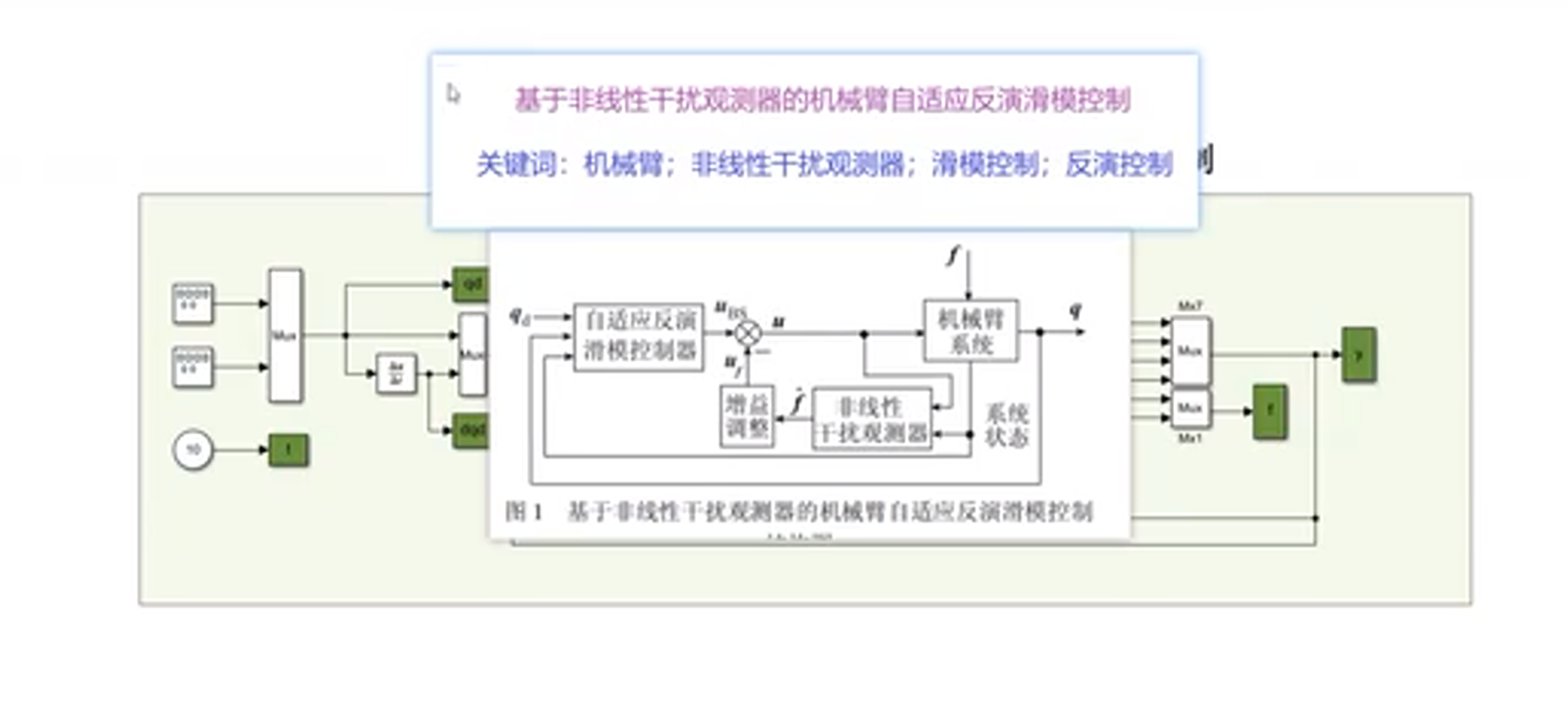 - 针对传统干扰观测器需要测量加速度项、应用模型受限等问题,提出改进的非线性干扰观测器设计方法,扩大了观测器的应用范围。