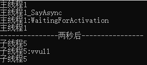 Console.WriteLine($"主线程{Thread.CurrentThread.ManagedThreadId}:{SayAsync().Result}");//阻塞主线程