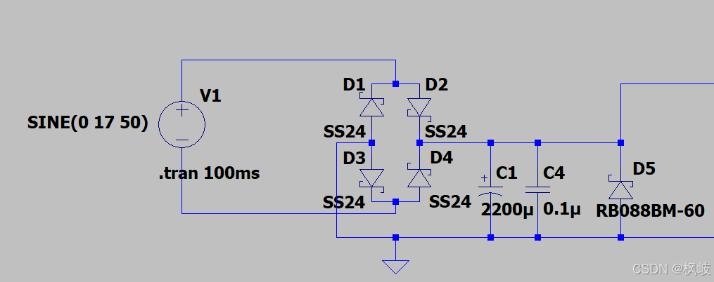 基于LTSPICE仿真软件设计一个AC-DC转换电路。