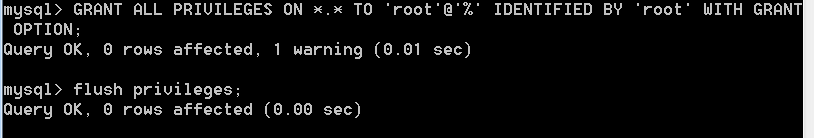 GRANT ALL PRIVILEGES ON *.* TO 'root'@'%' IDENTIFIED BY 'root' WITH GRANT OPTION;