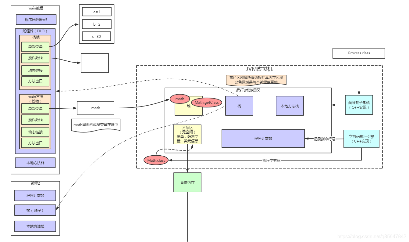 JVM内存结构示意图(主要看图)